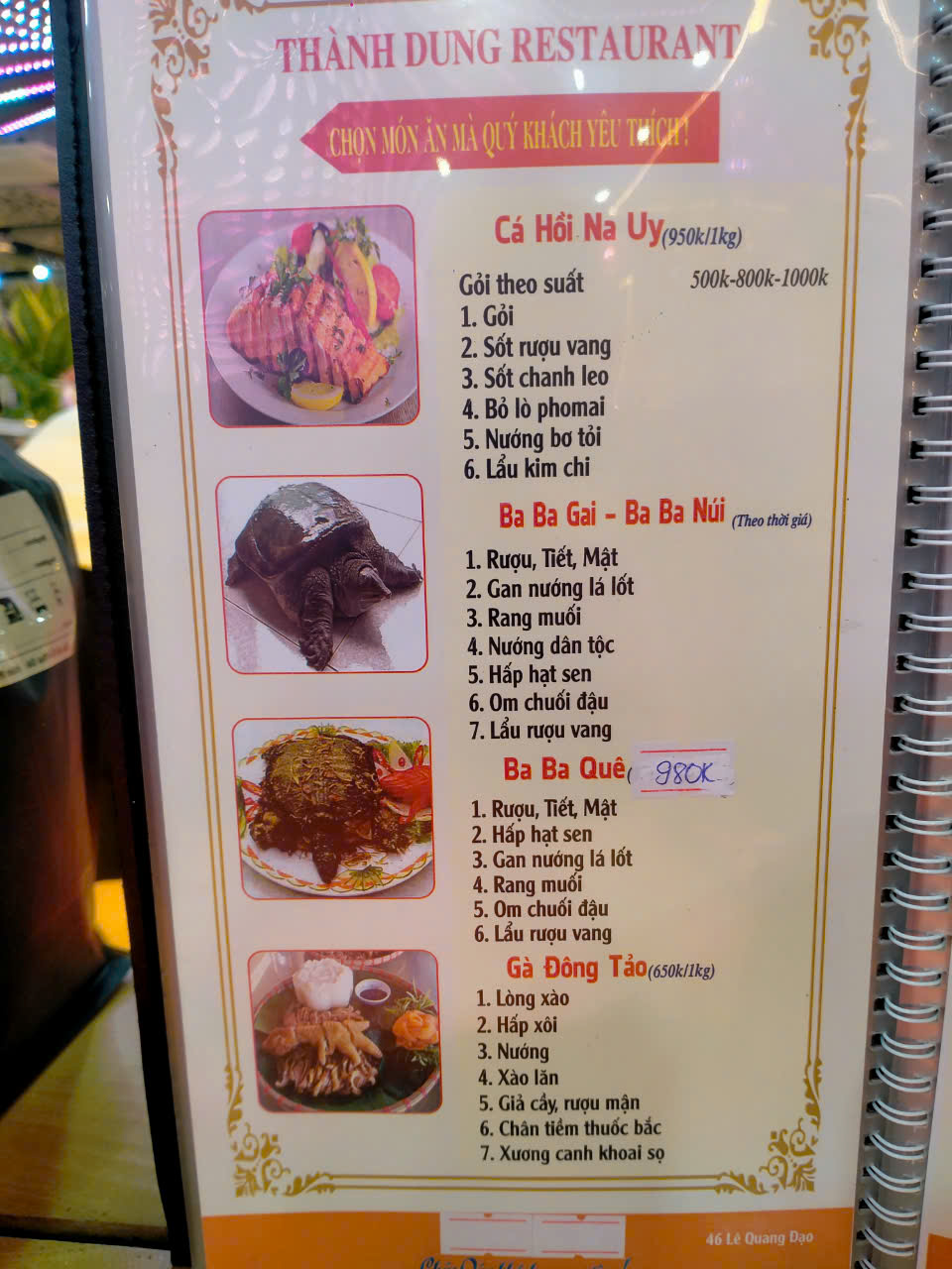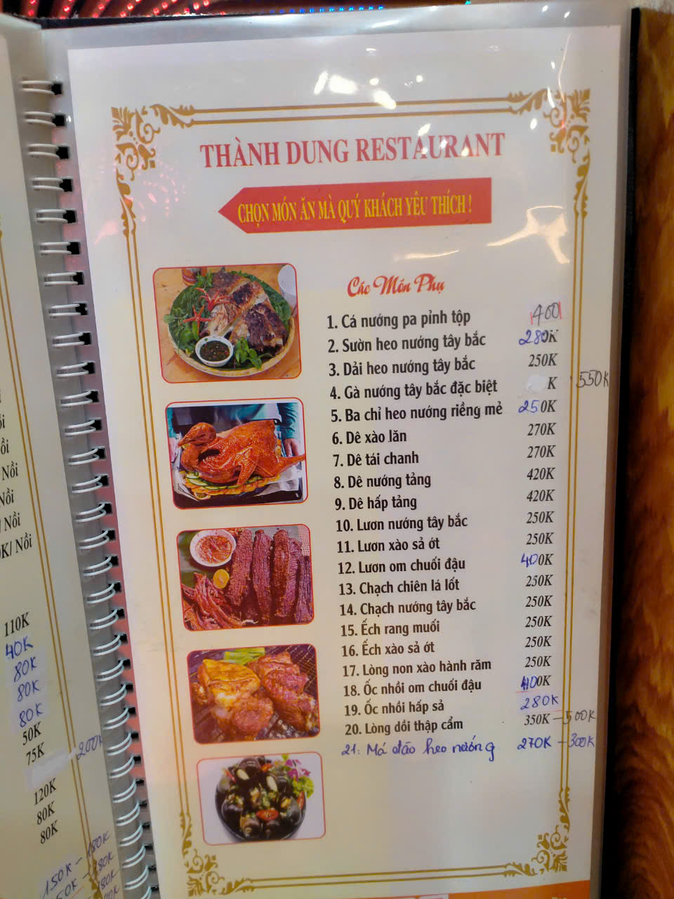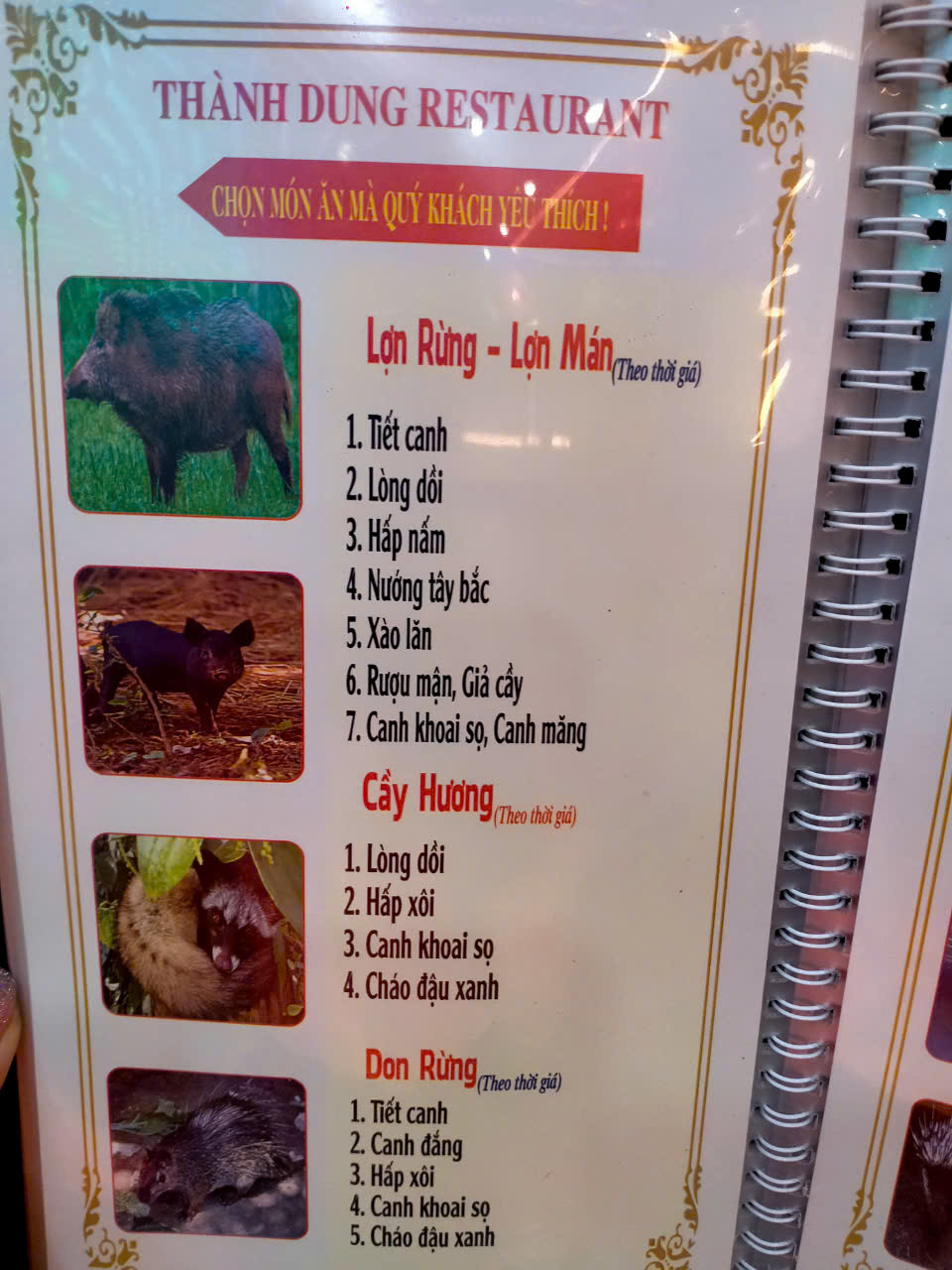 Nhà hàng Thành Dung tự hào mang đến một thực đơn đa dạng với hơn 100 món ăn hấp dẫn. Từ các món hải sản tươi ngon, cá sông đặc sắc, đến những món đồ rừng thơm ngon như gà, chim, lợn mán. Tất cả đều được chế biến từ nguyên liệu tươi mới, đảm bảo chất lượng từng món ăn.
